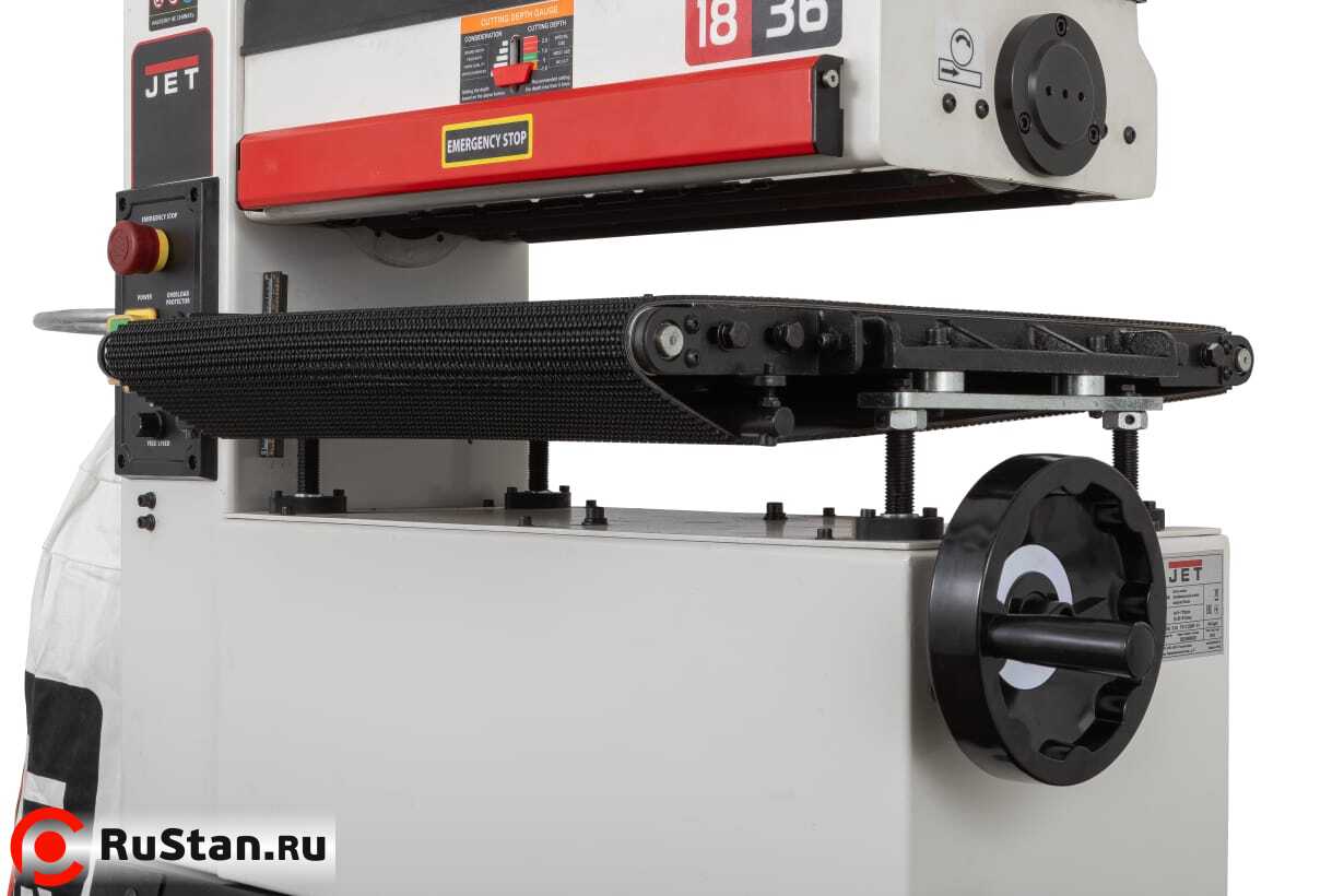 Такие системы обычно только в промышленных шлифовщиках. В станках JET раньше такого не было вообще. Теперь есть. Раньше была только аварийная кнопка-грибок на контрольной панели, здесь он тоже, конечно, есть. Консольный тип станка даст шикарную возможность обработать не только стандартную ширину в 457 мм, но и двойную ширину с переворотом.