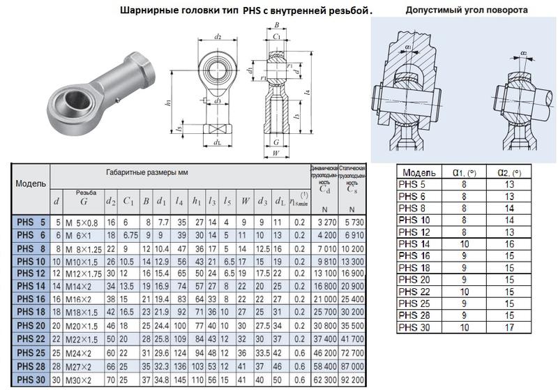 Головка шарнирная PHS16 d 16,0х21,0х 83мм с внутренней резьбой М 16х2,0 "CNIC"