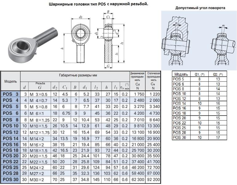 Головка шарнирная POS16 d 16,0х21,0х 85мм с наружной резьбой М 16х2,0 "CNIC"