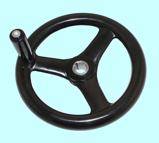 Маховик 200х18х44х6мм (DxdxHxb) с 3-мя спицами, бакелит "TLX" с ручкой