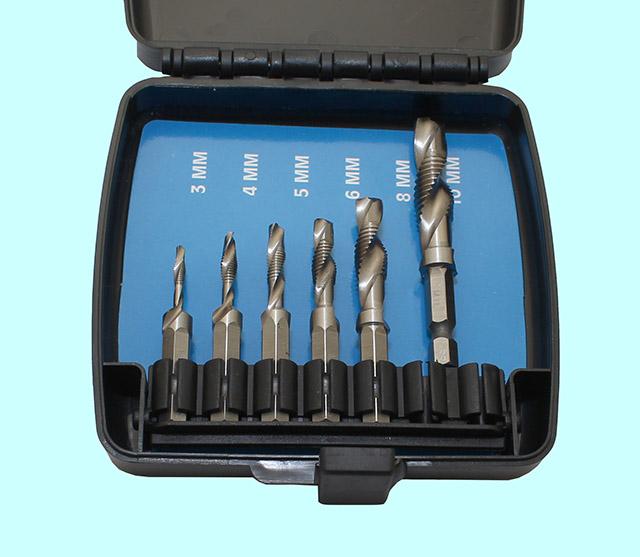 Набор метчиков-сверел из 6 штук (М3-М10) Р6М5 в пласт. футл. хвостовик HEX 1/4" "CNIC" (07106)