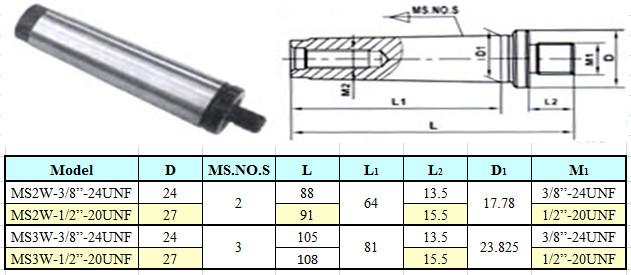 Оправка КМ3 / 3/8"-24UNF без лапки (М12х1.75), для резьбовых патронов "CNIC" (MS3W-3/8-24UNF)