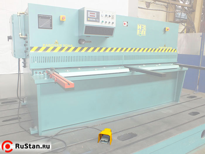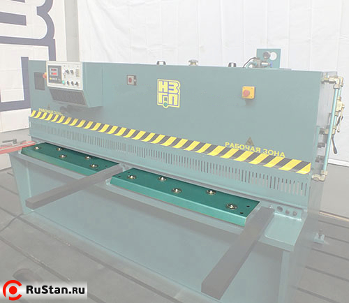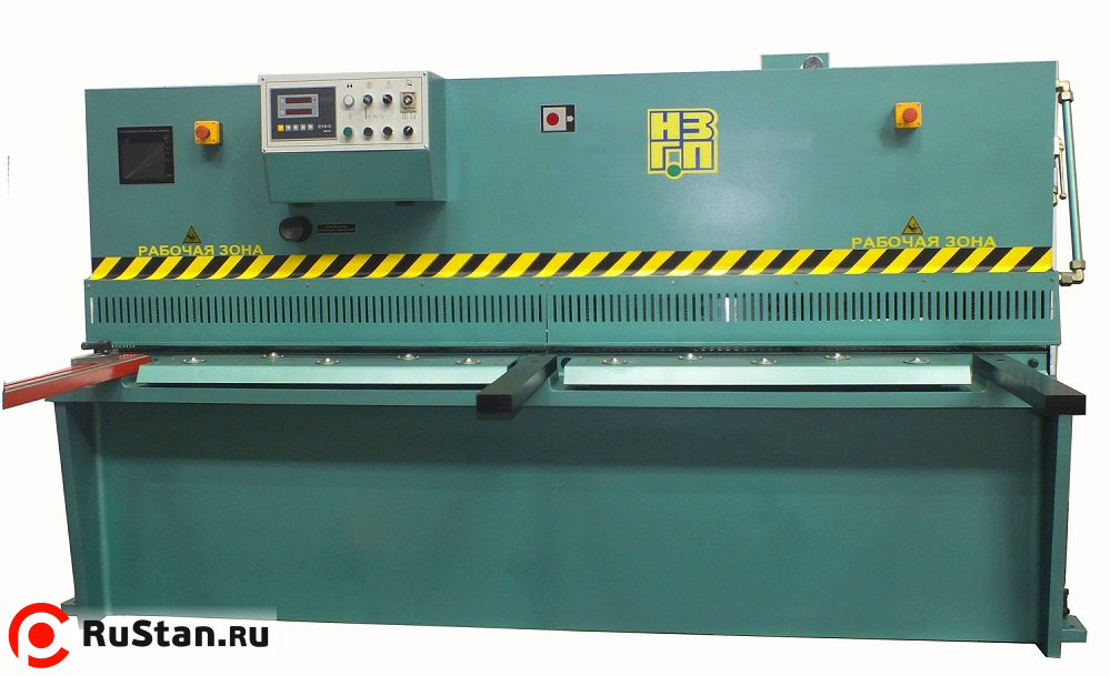 Также в базовую комплектацию обязательно входят переносная педаль управления и защитная решётка. Принцип работы НА3716 обычный для этого типа механизмов – разрезаемый лист подаётся на стол, фиксируется по заданному размеру задним упором, гидравлические цилиндры прижимают лист, ножевая балка совершает рез из верхнего положения. Затем балка возвращаются в начальное положение и прижимы возвращаются на место.