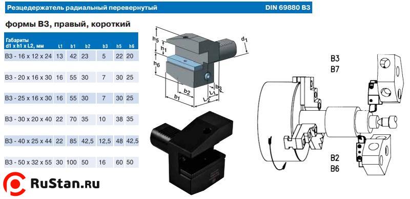 Резцедержатель радиальный перевернутый правый короткий (тип В3) с хвостовиком VDI 3425 по DIN 69880 (ГОСТ 24900-81). Применяется для токарной обработки на станках с числовым програмным управлением (ЧПУ).
