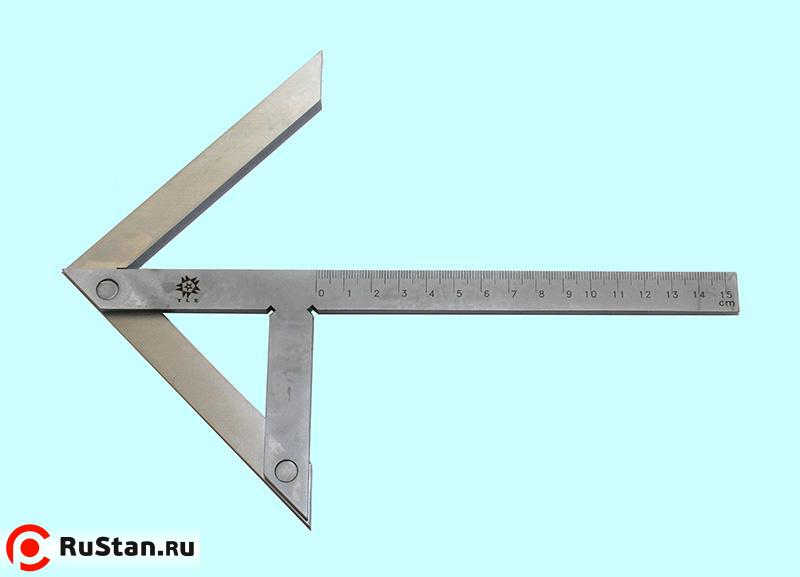Точный угольник для разметки и нахождения центра или угольник-центроискатель. Угольник-центроискатель — это угольник, с помощью которого помимо угловой разметки и контроля, находят центр окружности торца цилиндрических деталей. Угольник-центроискатель состоит из плоского угольника и линейки, закрепленной на угольнике таким образом, что она является биссектрисой прямого угла угольника. Для определения центра окружности угольник накладывают на торец цилиндрической детали так, чтобы его внутренние грани касались наружных боковых поверхностей детали. Карандашом, разметочным ножом или чертилкой по линейке наносят на деталь риску. Поворачивают угольник на некоторый угол и снова наносят риску. Повторяют операцию несколько раз. Место пересечения рисок и будет центром окружности.
