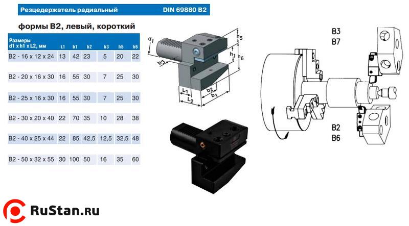 Резцедержатель радиальный левый короткий (тип В2) с хвостовиком VDI 3425 по DIN 69880 (ГОСТ 24900-81). Применяется для токарной обработки на станках с числовым програмным управлением (ЧПУ).