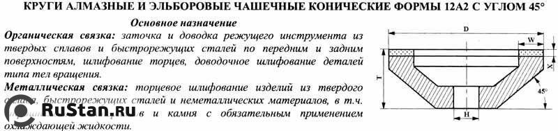 Алмазный круг 12А2-45град. (чашечный конический) предназначен для обработки твёрдых материалов и идеально подходит для профессионального использования. Основные параметры круга следующие: