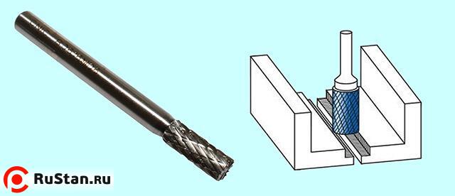 Борфреза цилиндрическая  d12х25х6х65 Р6М5 Х-образн. насечка