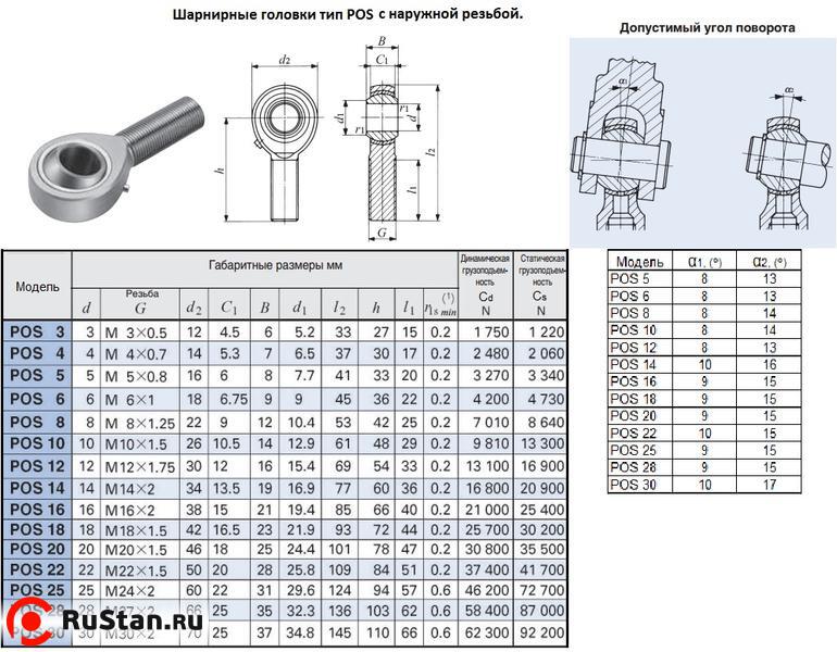 Головка шарнирная POS25 d 25,0х31,0х124мм с наружной резьбой М 24х2,0 "CNIC"