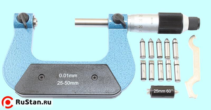 Предназначен для измерения среднего диаметра метрической, дюймовой резьбы с углом 60 градусов. В комплекте 5 пар вставок: шаг 0,6-0,9мм/44-28 ниток на дюйм; шаг 1,0-1,75мм/24-14 ниток на дюйм; шаг 2,0-3,0мм/13-9 ниток на дюйм; шаг 3,5-5,0мм/8-5 ниток на дюйм; шаг 5,5-7,0мм/4,5-3,5 ниток на дюйм. ГОСТ4380-93Видеоинструкция по использованию микрометров.