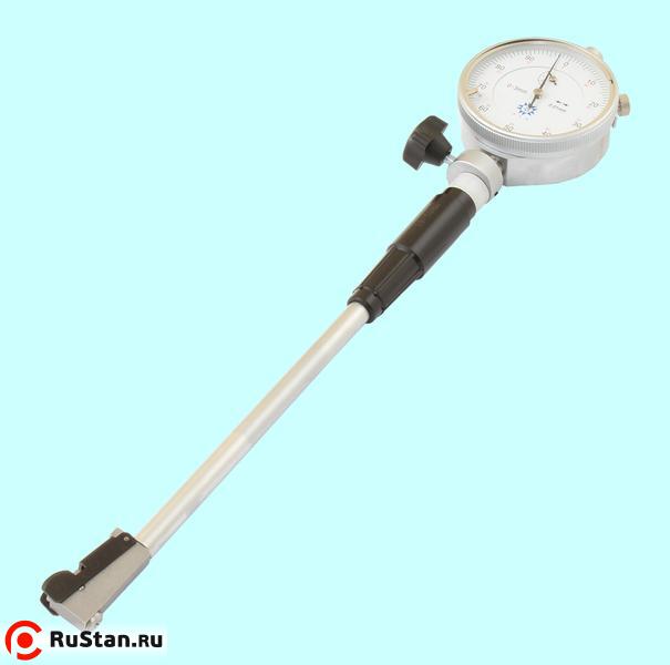 Предназначен для измерения отклонений внутренних размеров от заданных. Глубина измерений до 140мм. Индикаторная головка ИЧ-03 с ценой деления 0,01мм; диаметром 57мм. Тип передачи усилия от измерительного наконечника на измерительную головку - клиновой. Удлинитель 15мм. Ключ монтажный.Технический паспорт