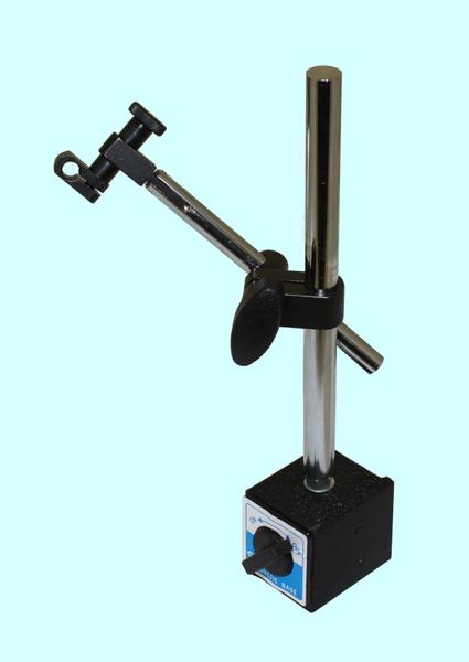 Оснащен устройством тонкой регулировки с винтовым механизмом Универсальная головка позволяет закреплять индикатоные головки с диаметром штока 8мм с ушком и без ушка, а так же индикаторы типа ИРБ (ИРТ) с фиксацией "ласточкин хвост". Высота колонки - 115мм, длина консоли - 105мм, длина головки 70мм, магнитное основание - 58х50х55мм.