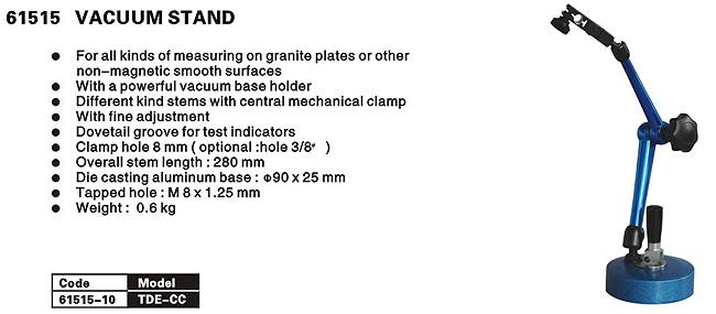 Усилие отрыва 80 кг. Штатив предназначен для крепления индикаторов часового типа ИЧ как с ушком, так и без ушка при контрольных измерениях биений и линейных отклонений от заданных норм. Размер магнитной базы: 60х49х54мм. Диаметр отверстия под шток индикатора - 8мм Диаметр ушка индикатора - не менее 6мм.