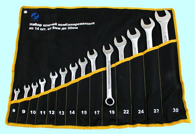 Набор ключей Торцевых коленчатых 2-х сторонних из 10-ти шт. 8-22мм хром, в сумке "CNIC" |