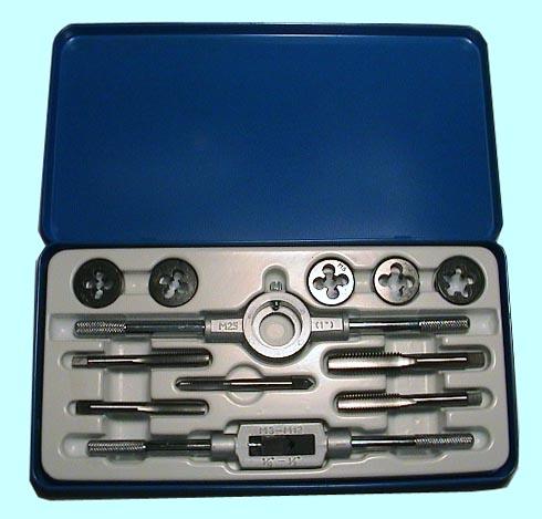 Вороток,плашкодерж-ль и по 17 метчиков и плашек М3-М12 в мет. коробке (40 позиций)