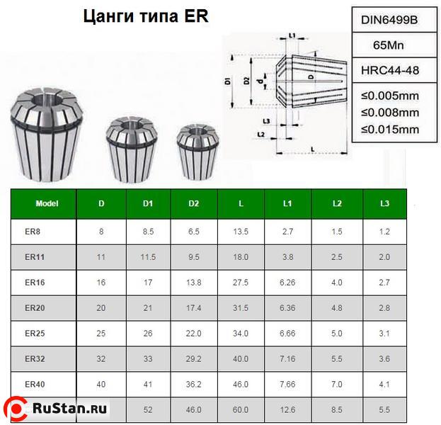 Цанги: 4, 6, 8, 10, 12, 14, 16мм.