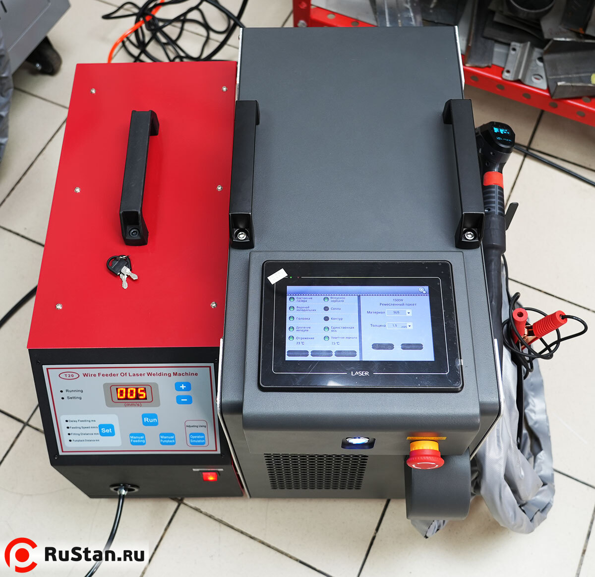 Лазерный аппарат укомплектован встроенным в корпус автоматическим податчиком сварочной проволоки 0.8-1.6мм. Скорость подачи регулируемая. Включение подачи происходит синхронно с нажатием кнопки пуск на сварочной головке (пистолете)