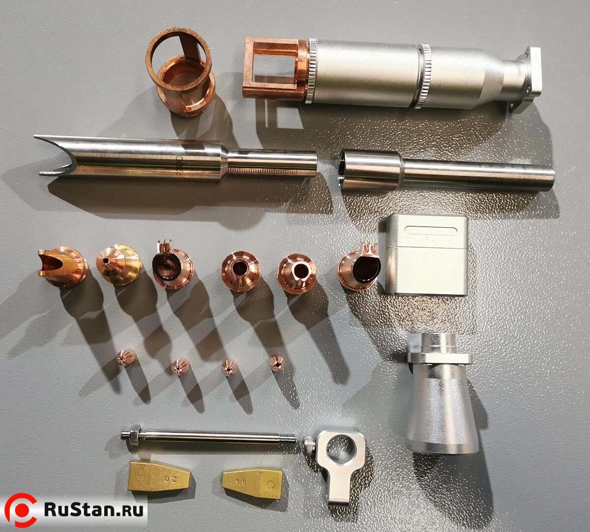Аппарат комплектуется сменными насадками (соплами) на пистолет для сварки разных поверхностей.