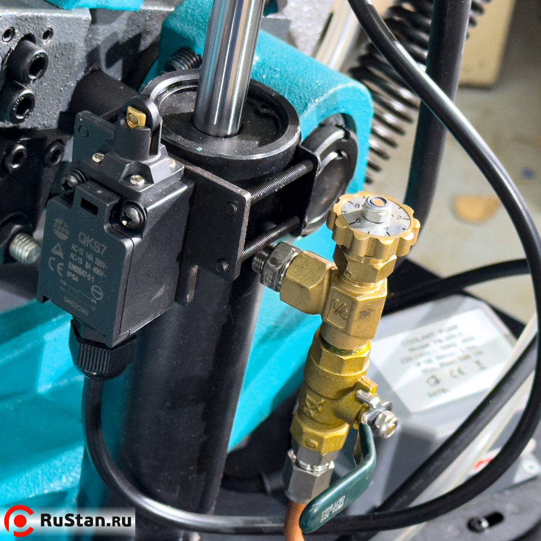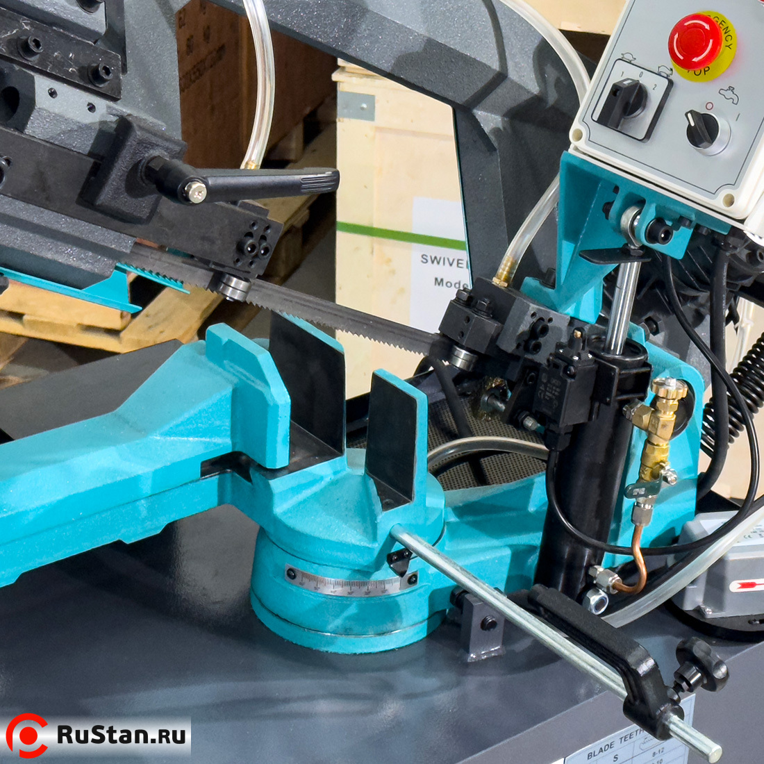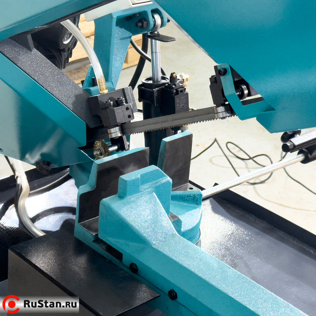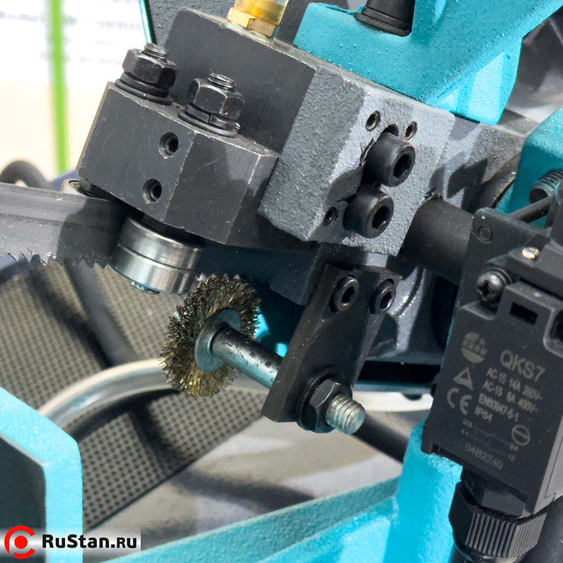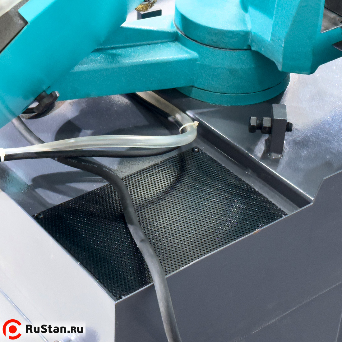 Скорость опускания пильной рамы можно регулировать гидроцилиндром. Модель оснащена системой подачи в зону резания смазочно-охлаждающей жидкости (СОЖ).