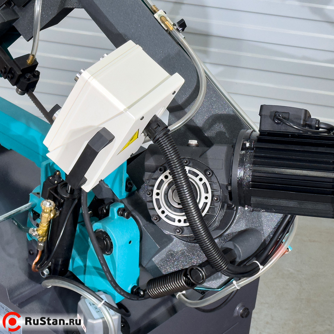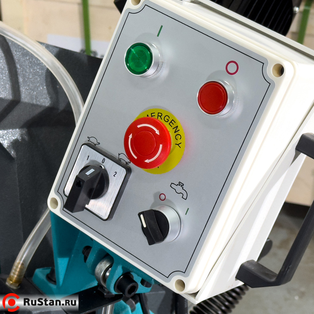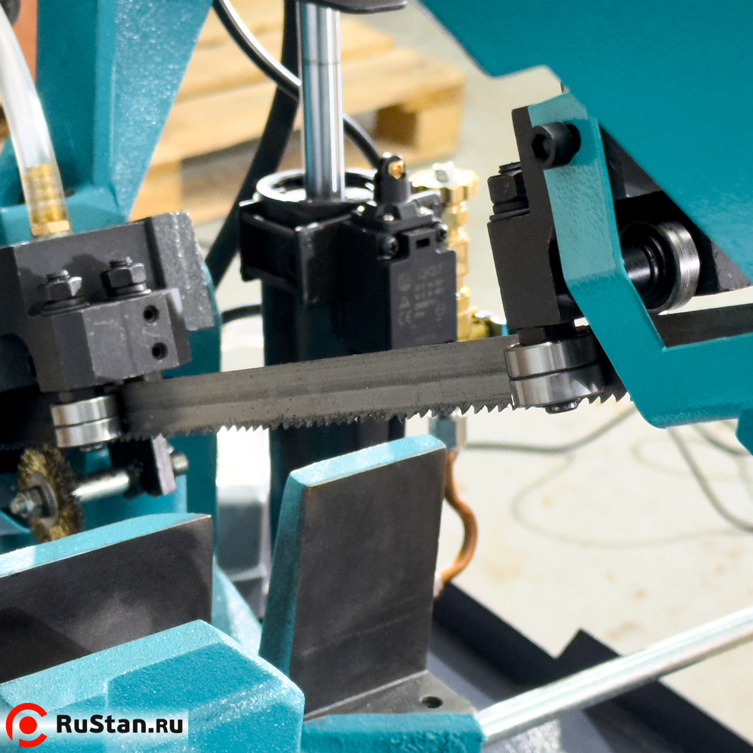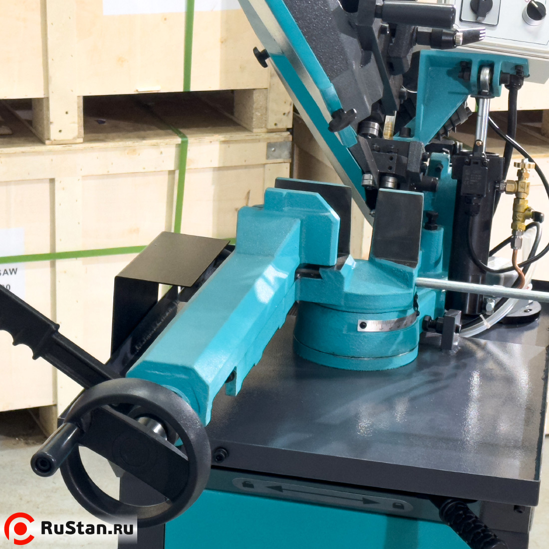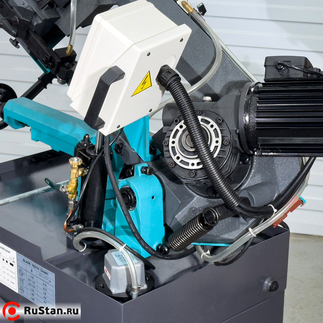 Скорость опускания пильной рамы можно регулировать гидроцилиндром. Модель оснащена системой подачи в зону резания смазочно-охлаждающей жидкости (СОЖ).