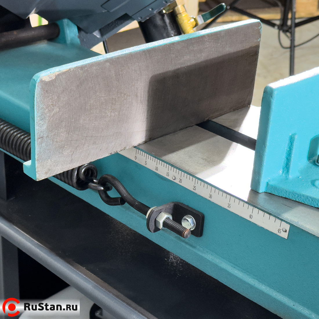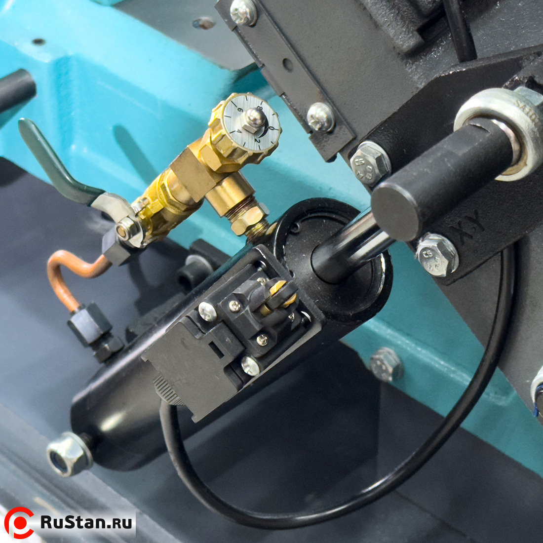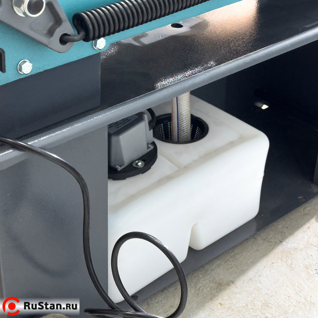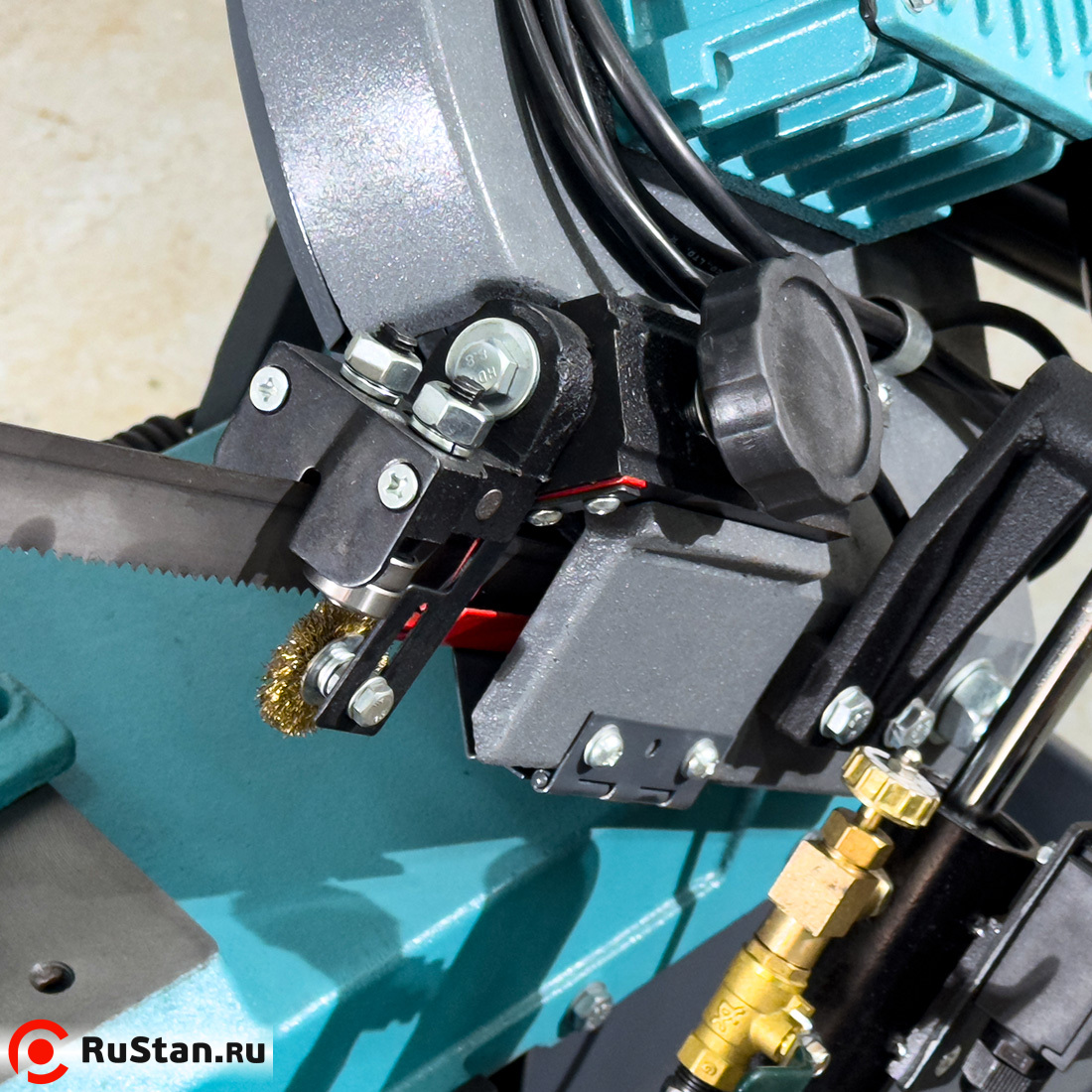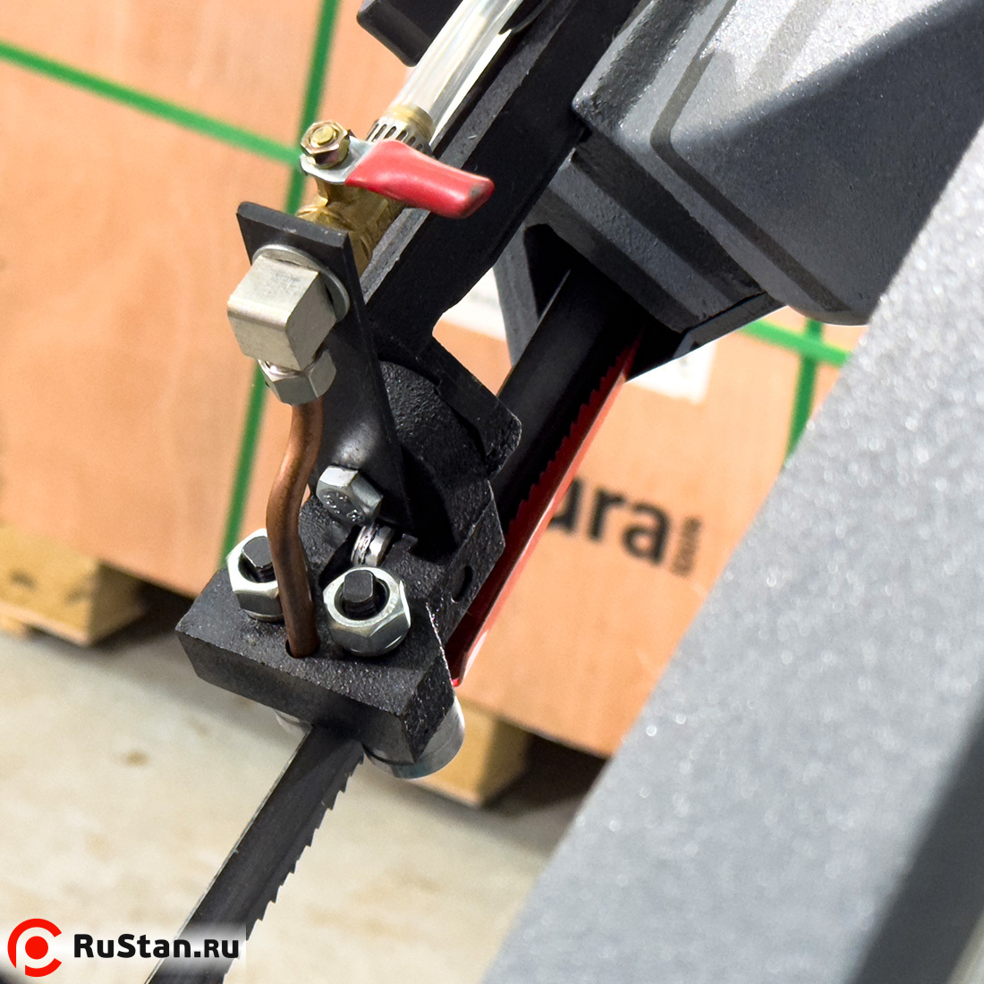 Скорость опускания пильной рамы регулируется гидроцилиндром. Модель оснащена системой подачи в зону резания смазочно-охлаждающей жидкости (СОЖ).