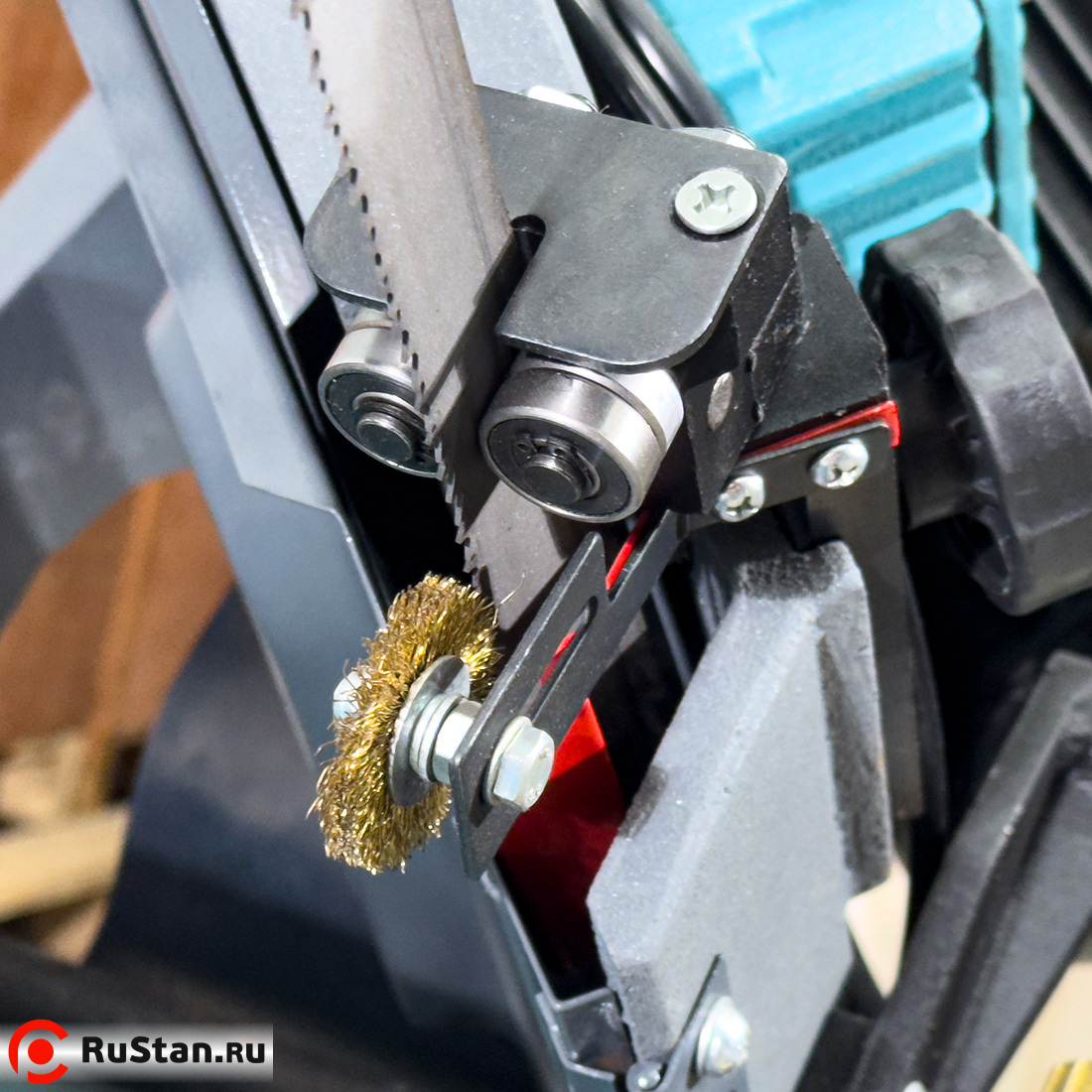 • Проволочная щетка для очистки полотна пилы от стружки.