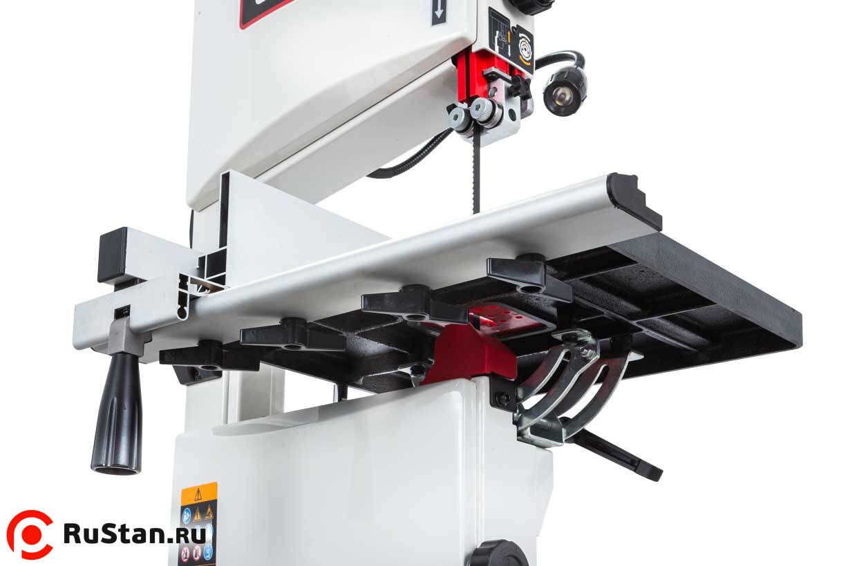 Станок оборудован регулируемым двухпозиционным параллельным упором. Он имеет две рабочие поверхности: высокую для перпендикулярных столу резов и толстых деталей и низкую для наклонного пиления и для плоских заготовок. Упор перемещается вдоль направляющего профиля с миллиметровой шкалой; для удобства позиционирования по ней, на корпусе сделан «целик», состоящий из увеличительного стекла с риской. Также в комплект входит скользящий угловой упор с направляющей вдоль Т-образного паза.