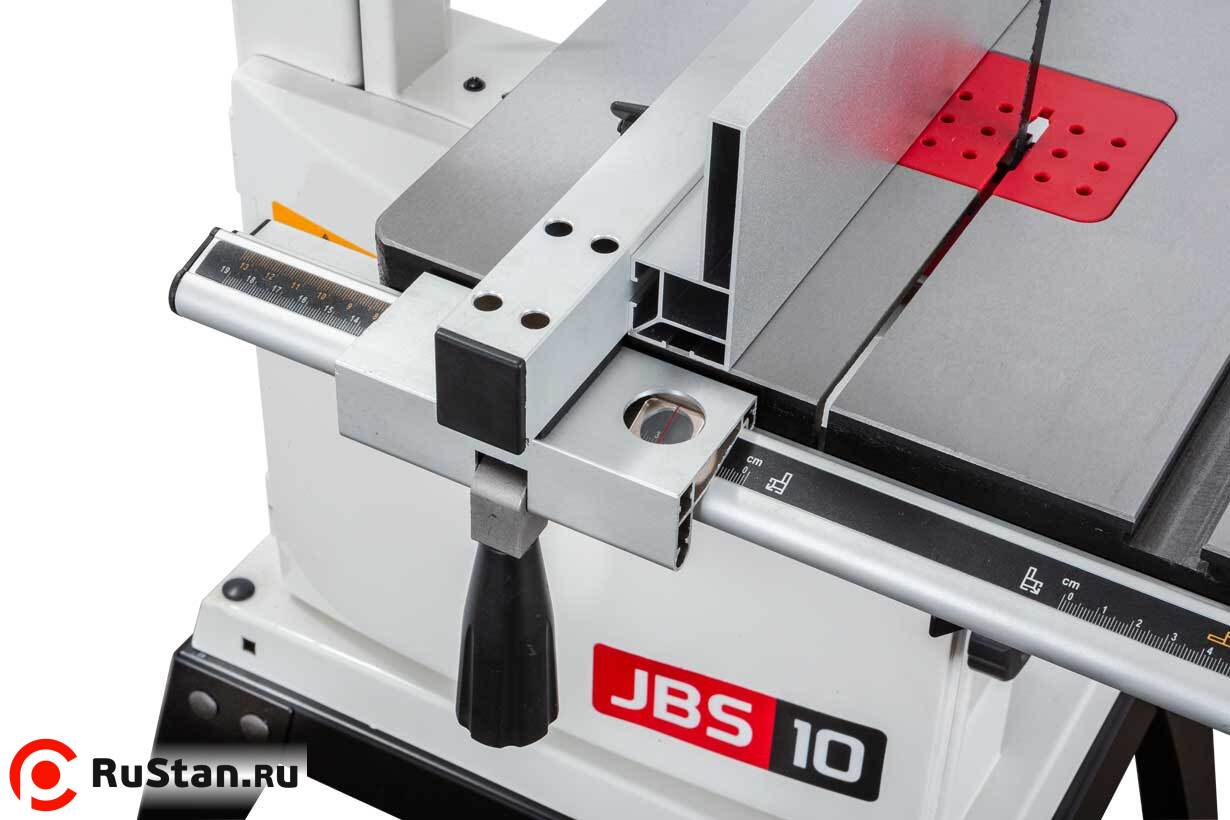 Параллельный упор двухпозиционный: имеет высокую сторону для надежной поддержки высоких заготовок при резе перпендикулярно столу и низкую, для плоских деталей и для пиления с наклоном. Фиксация упора эксцентриковая, на направляющем профиле миллиметровая разметка, на корпусе увеличительное стекло с риской.