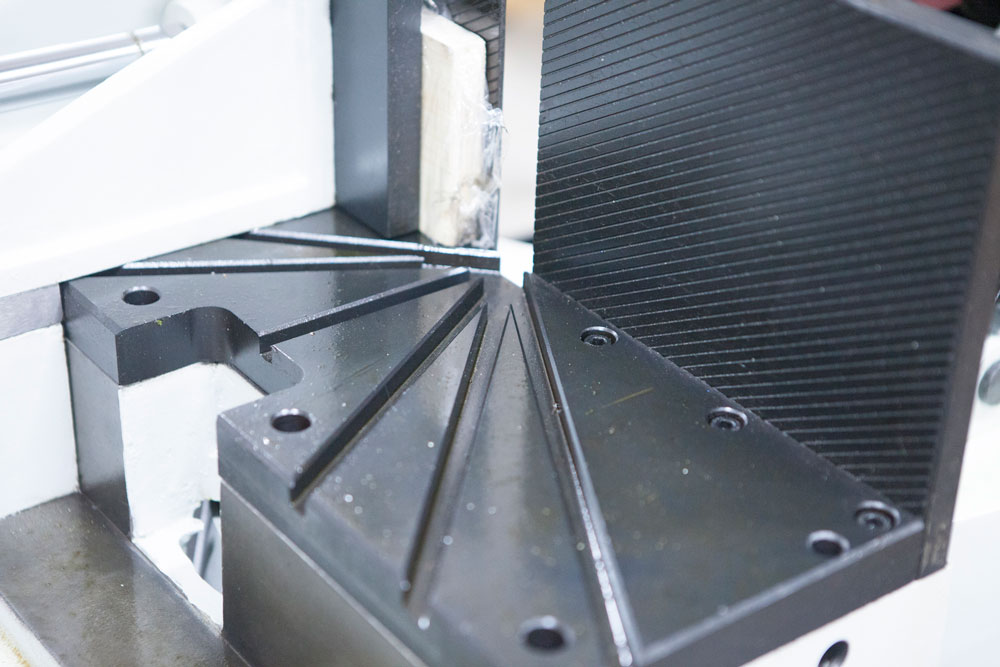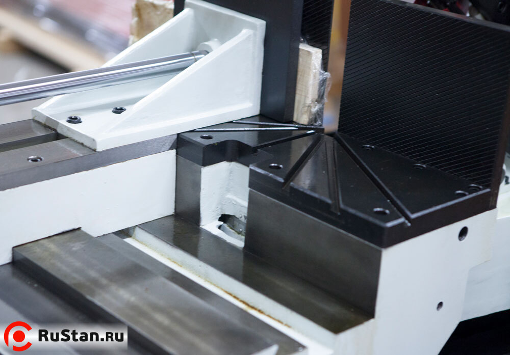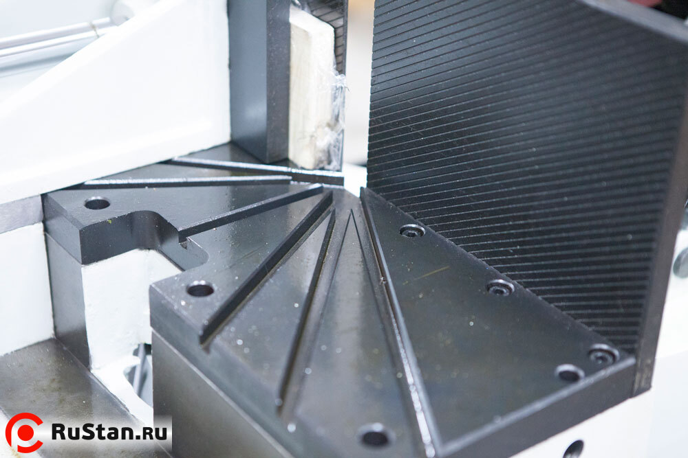 Гидравлические тиски раздвигаются на 460 мм, что позволяет пилить прямоугольною заготовку с размерами, превышающими рабочий просвет подъема пильной рамы.