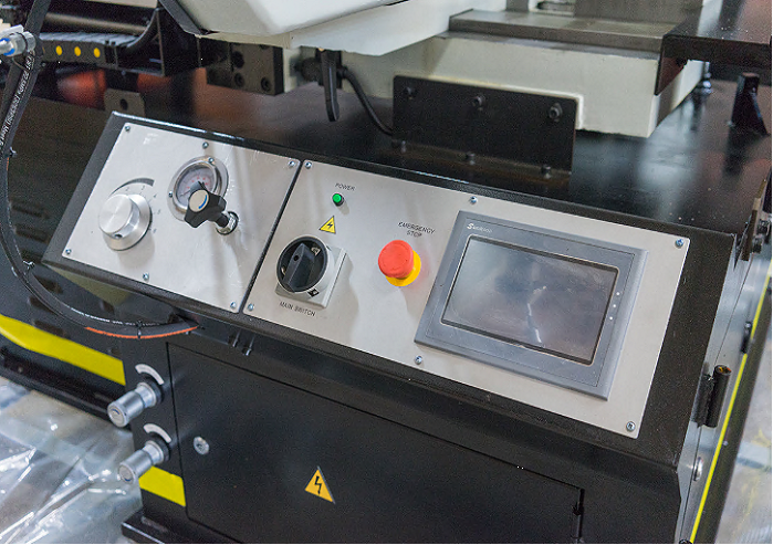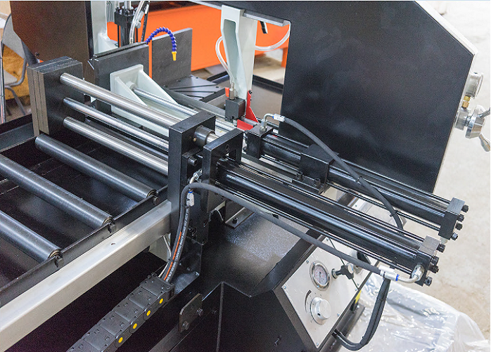 - Автоматический зажим и подача материала в зону резания, гидравлический привод с PLC контроллером