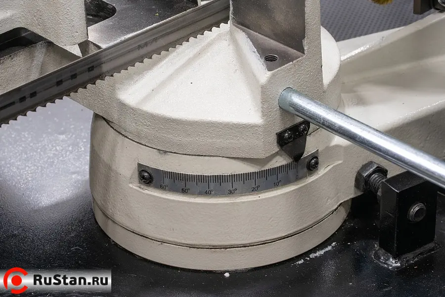 В рабочей зоне резания полотно точно ведется двумя направляющими головками. Станок европейского образца с возможностью поворота корпуса пилы от 0° до +60°, предназначен для пиления заготовок, под различными углами и при частой смене угла пила.
