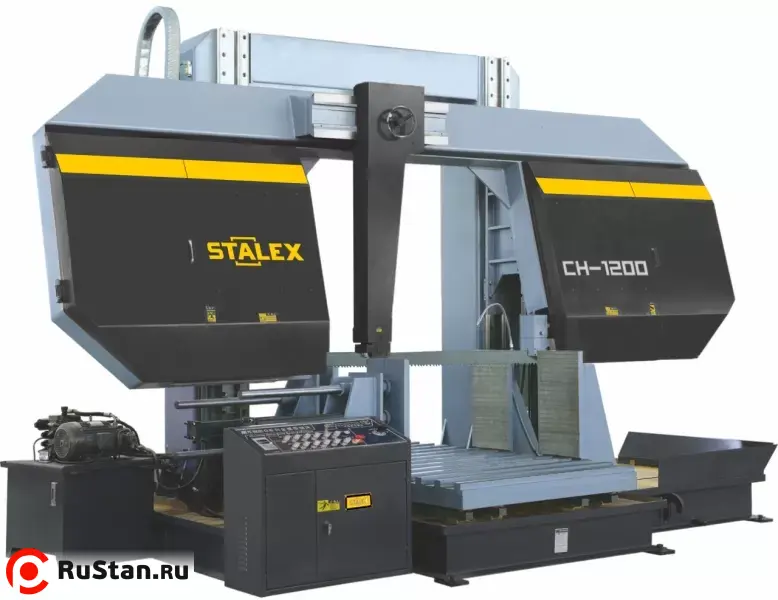 Полуавтоматический двухстоечный гидравлический ленточнопильный станок Stalex CH-1000 предназначен для высокоточного пиления крупногабаритных металлических заготовок: труб, профилей и сплошного материала диаметром до 1000 мм или сечением до 1000×1000 мм под углом 90°. Станок работает в автоматическом и ручном режимах, оснащен жесткой двухколонной конструкцией, гидравлическими тисками, системой плавной регулировки скорости резания и подачей СОЖ.