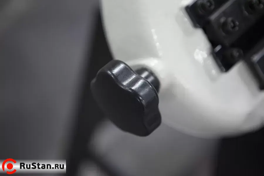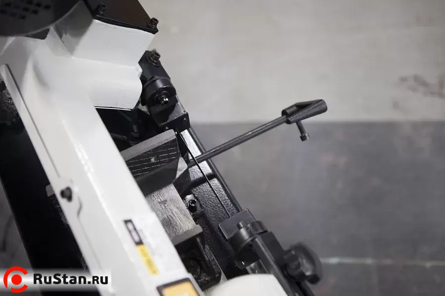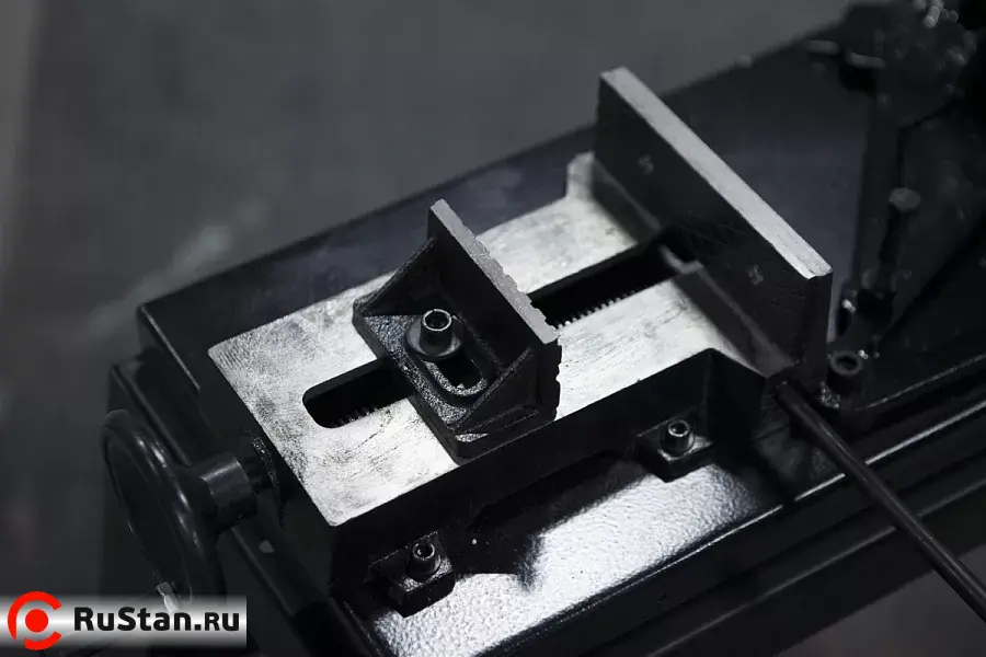 - Зажим заготовки осуществляется вручную вращением маховика, подача заготовки также ручная.