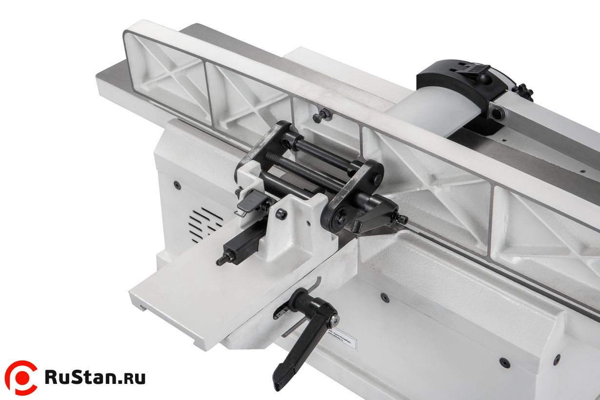 Основное преимущество JSJ-6 в сравнении с аналогами в том, что его конструкция обеспечивает точную комфортную работу без вибраций: массивные столы, упор и его кронштейн сделаны так же, как на тяжелых профессиональных моделях, что в компактном классе настольных строгальных станков почти не встречается.