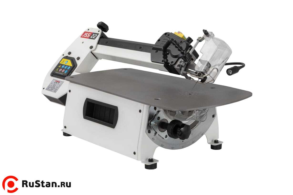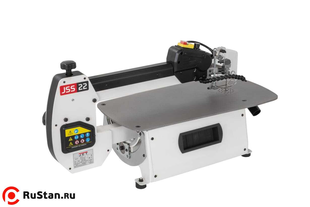 JSS-22 – новинка 2025. Абсолютно новый профессиональный лобзиковый станок в линейке JET. Станок разработан для достаточно интенсивного, профессионального использования. От недорогих, любительских моделей его отличает целый ряд особенностей. Прежде всего большой площади, точный лист рабочего стола с особенным покрытием для стабильной фиксации и удобного перемещения заготовки при пилении. Все детали рамы маятникового механизма и подстолья изготовлены и толстой стали.