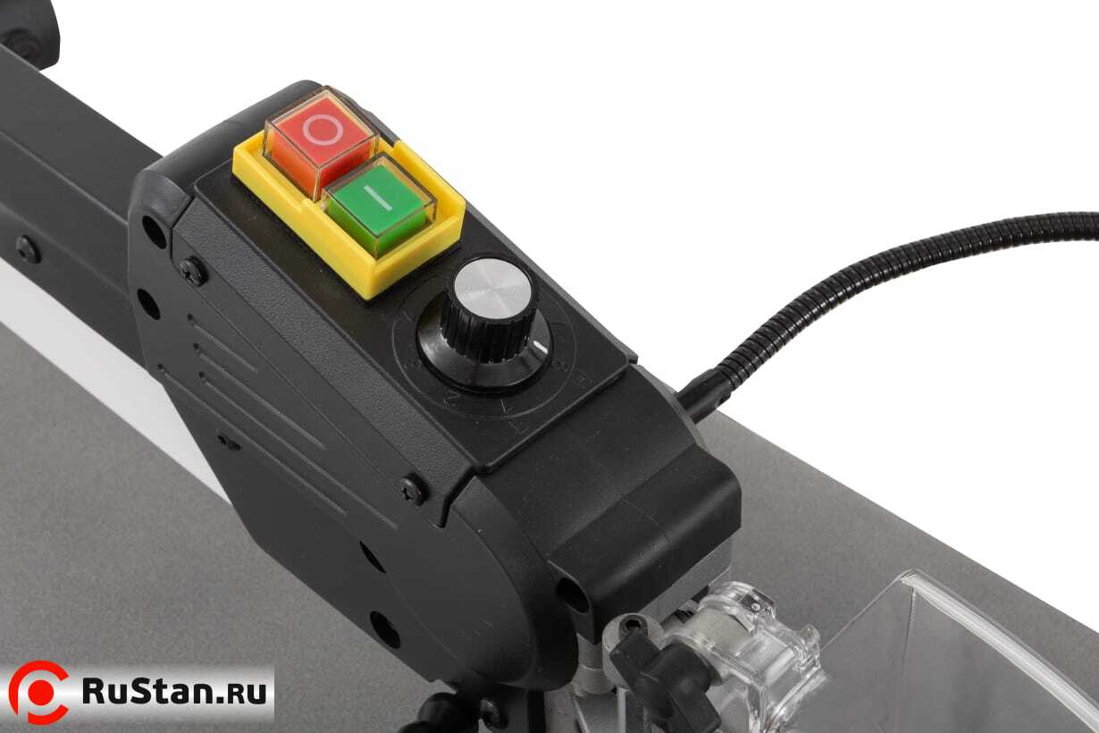 Самая удобная опция – это возможность подключения напольной педали пуска/остановки пиления. В станке уже на заводе все приготовили, просто вставляйте специальный штекер педали в вход на станке и пользуйтесь ею. Удобство такой опции оценит каждый.