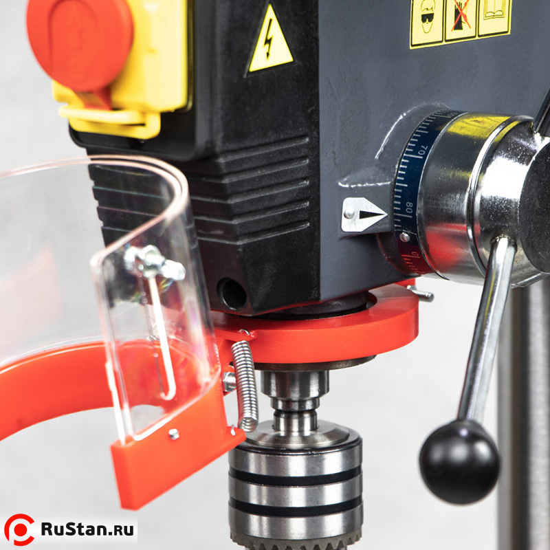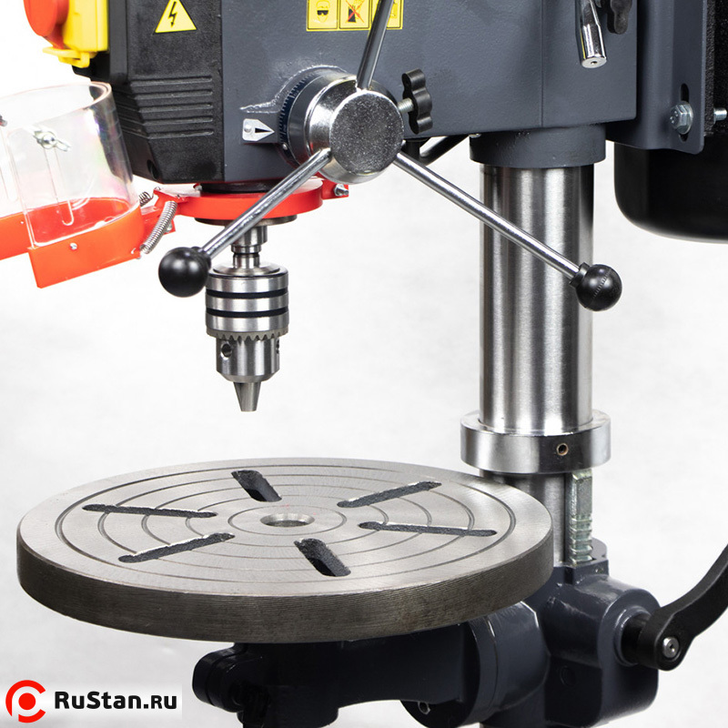 Станок может быть использован практически в любых условиях — он работает от трёхфазной сети, имеет небольшие размеры и отличается невысокой потребляемой мощностью. Возможности станка расширены благодаря функциями поворота и наклона стола. Для удобства при эксплуатации станок оснащен отличной подсветкой рабочей зоны. Кроме того, настольный сверлильный станок имеет защитный экран, который обеспечивает дополнительную защиту и при этом не закрывает обзор.