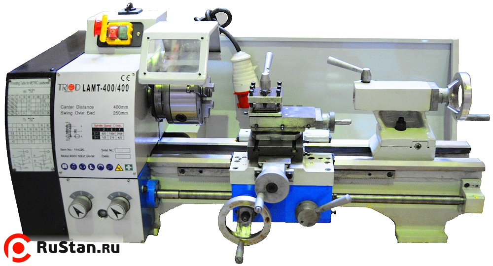 Настольный токарный станок TRIOD LAMT-400/400 предназначен для обработки преимущественно тел вращения путём снятия с них стружки при точении. На токарных станках. можно выполнять различные виды токарной обработки: обтачивание цилиндрических, конических, фасонных поверхностей, подрезку торцов, отрезку, растачивание, а также сверление и развёртывание отверстий, нарезание резьбы и накатку рифлений, притирку и т.п.