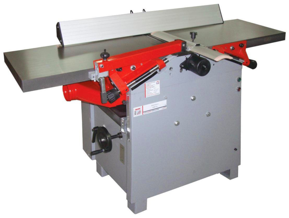 Настольный строгальный (фуговально рейсмусовый) станок ADH 200 имеет ширину строгания 204 мм, автоподачу заготовки и два строгальных ножа, а также стальной вал подачи с зубчатой нарезкой и обрезиненый выходной вал.