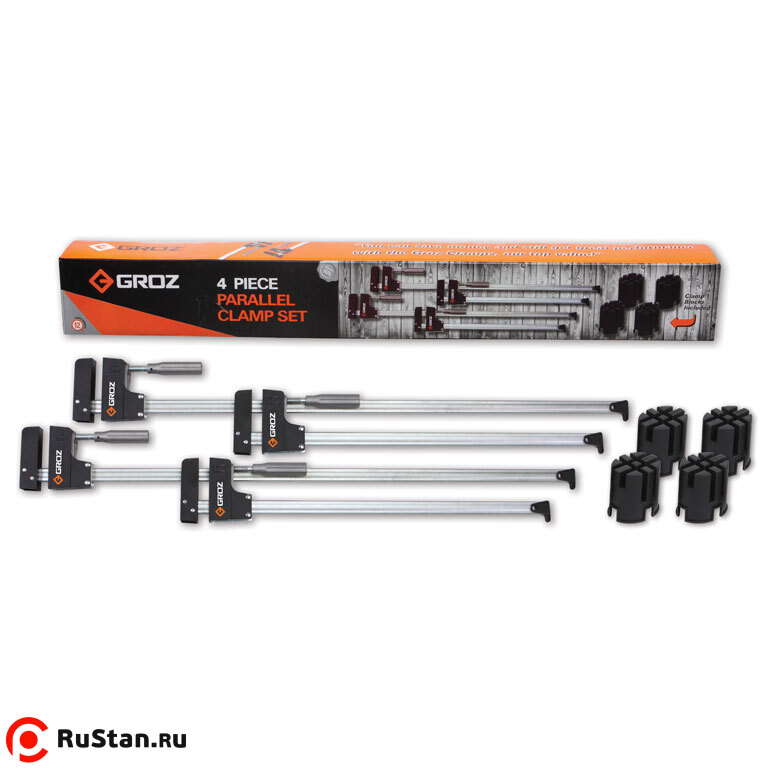 Классические F-образные струбцины с направляющей из высококачественной профилированной стали с насечками для фиксации подвижной части зажима. Стальные губки расположены в защитных пластиковых корпусах. Усилие сжатия – до 2500 кН.