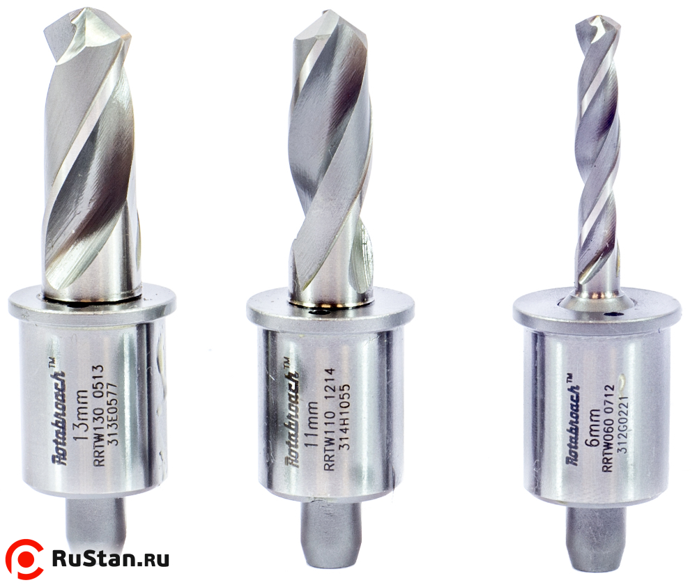 Спиральные сверла Rotabroach по металлу из быстрорежущей стали М42 со встроенным цилиндрическим хвостовиком Weldon 19,05 выполнены для простого и точного сверления отверстий малого диаметра в трудно поддающихся для обработки сталях с возможностью быстрой смены инструмента.