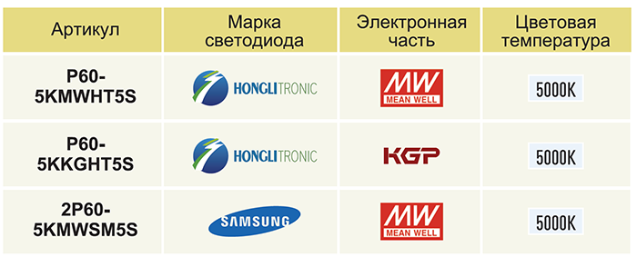 P60-5KPHHT5S: Мощность: 60 Ватт / Производительность: 7400 Лм / Цветовая температура: 5000K / Светодиод: Honglitronic / КСС: Д (120°) / Алюминий / Электронная часть: Philips / Защита от перенапряжения / Гальваническая изоляция / Соответствие ГОСТ, IEC / 176-264AC/250-370DC / 100 000 часов / 5 лет / 530х80х136 / Нетто: 1,5 КгВозможные комплектации: